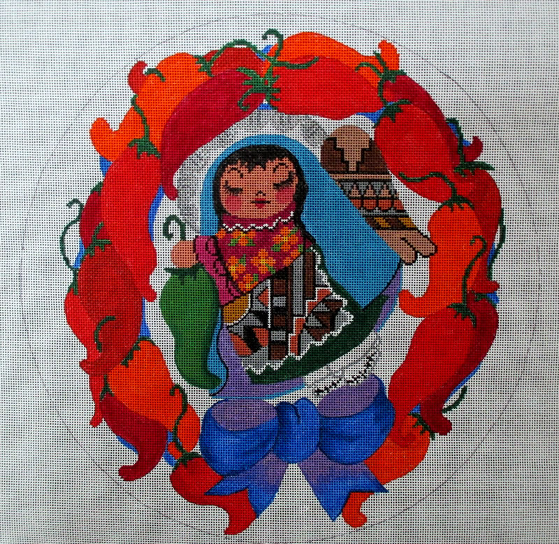 Ann was well known as a New Mexican folk artist and needlewoman. Regional Spanish-American symbols appear in her canvases. Ann encouraged stitchers to use their own talents and ideas to make these pieces unique.